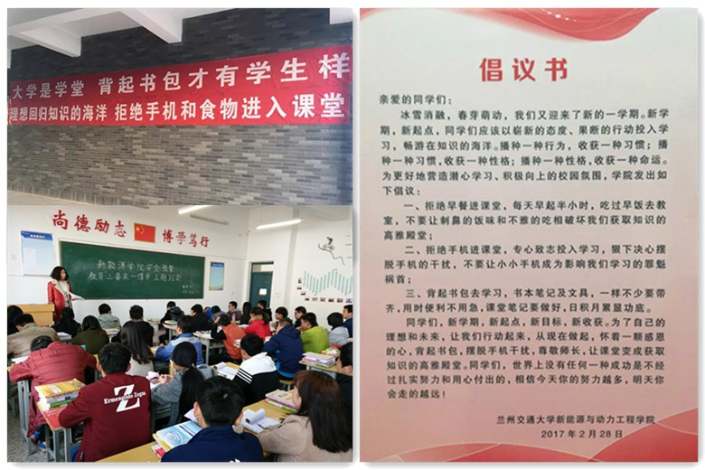 新學期伊始,新能源學院要求所有班主任及輔導員老師除了做好學生課堂管理工作、宿舍安全衛(wèi)生工作、密切關注“三困生”等常規(guī)工作之外,重點部署了安全預警教育和“三要求一倡導”教育活動,即要求學生上課必須關閉手機、不得將食品帶入課堂、不準在公共場所吸煙,倡導學生背書包。
