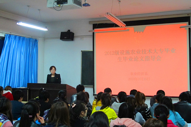 根據(jù)設(shè)施農(nóng)業(yè)技術(shù)專業(yè)人才培養(yǎng)方案要求,結(jié)合國家骨干校項目建設(shè)任務(wù),為了提高2014屆設(shè)施農(nóng)業(yè)技術(shù)專業(yè)畢業(yè)生畢業(yè)論文(設(shè)計)質(zhì)量,農(nóng)業(yè)經(jīng)濟系于316日晚召開了“2014屆大專畢業(yè)生畢業(yè)論文指導會。全系教師及2012級設(shè)施農(nóng)業(yè)技術(shù)大專(1)、(2)班81名同學參加了本次會議。