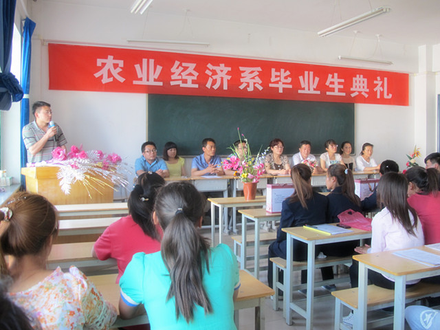 在畢業(yè)典禮上,蔡飛宣讀了2014農(nóng)經(jīng)系優(yōu)秀畢業(yè)生的名單,同時(shí)頒發(fā)了榮譽(yù)證書(shū)。晏素珍做了講話(huà),她指出大學(xué)生活對(duì)學(xué)生的影響是潛移默化的、是深入血液的、更是會(huì)持續(xù)發(fā)酵的。武威職業(yè)學(xué)院始終堅(jiān)持自己的傳統(tǒng)和精神,始終堅(jiān)持“厚德長(zhǎng)技”的崇高理想,始終堅(jiān)持對(duì)“崗位需要即人才”的不懈追求,也讓所有從這個(gè)校門(mén)中走出的人感到更加地自豪。作為系主任和長(zhǎng)輩,晏素珍以“多一點(diǎn)追求理想的情懷、多一點(diǎn)對(duì)追求卓越的堅(jiān)持、多一點(diǎn)對(duì)社會(huì)的愛(ài)”與畢業(yè)生們共勉,并希望畢業(yè)生在新的人生旅途中帶上師長(zhǎng)的祝福和同窗的友誼,帶上美好的希望和心中的理想,更帶上農(nóng)經(jīng)系滿(mǎn)滿(mǎn)的期望,去實(shí)現(xiàn)自己的人生目標(biāo),實(shí)現(xiàn)報(bào)銷(xiāo)祖國(guó)的愿望。