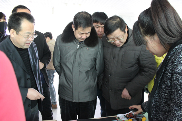 翟存祥在展區(qū)指出,本次作品展作品設計多樣,內(nèi)涵豐富,比起前幾次取得了更大進步,可以作為骨干校建設成果,典型案例。他強調(diào),應該精選一部分設計新穎、創(chuàng)新能力較強的作品留存,做為學院骨干校建設成果進行展示。