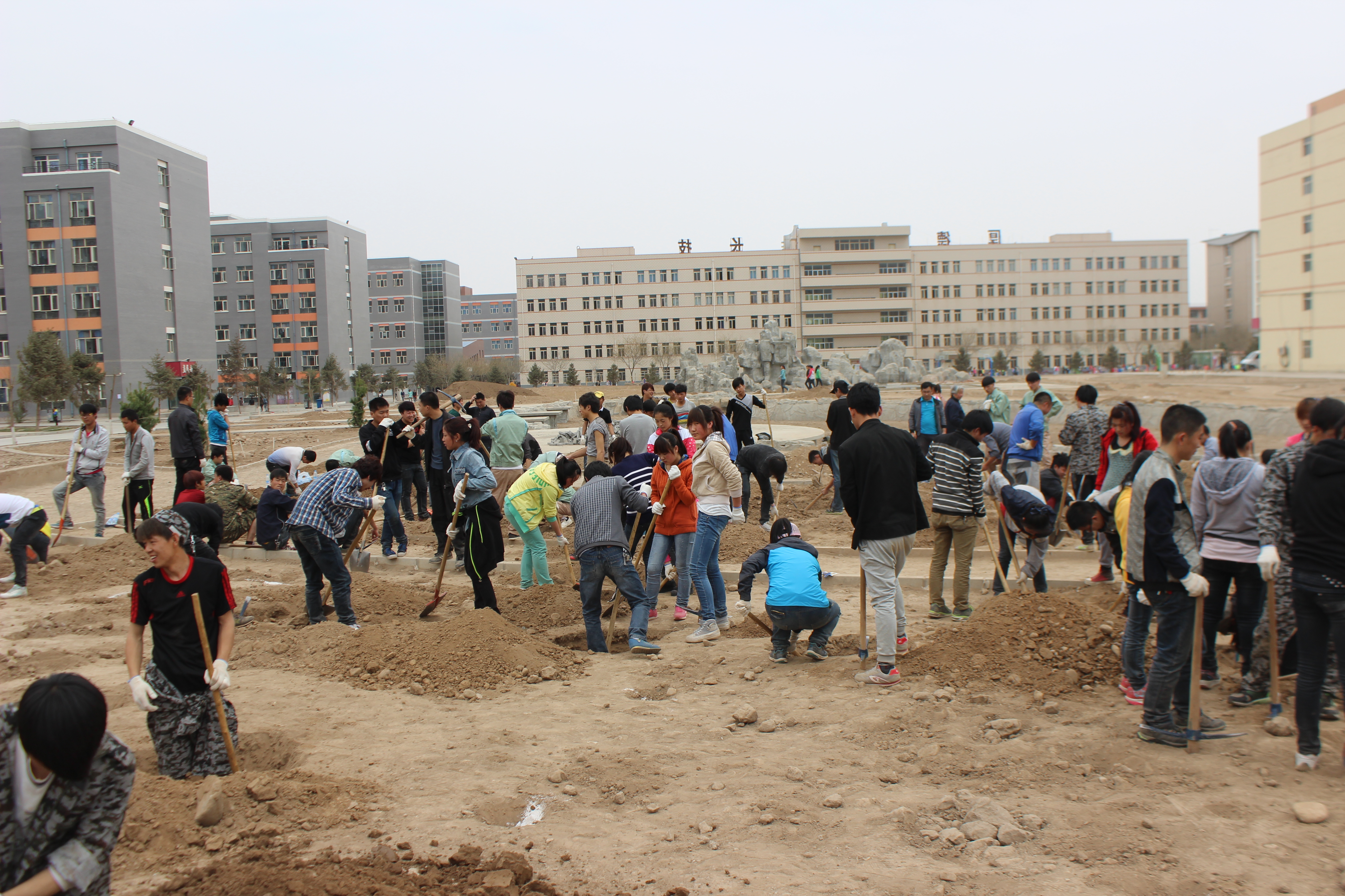 在植樹現(xiàn)場,220名師生積極投入到植樹活動中。他們用镢頭、鐵锨挖開樹坑,放入樹苗,然后細(xì)心地往坑中填土;樹苗栽好后認(rèn)真地扶正樹苗、踩實(shí)新土,整個(gè)植樹現(xiàn)場一片忙碌。經(jīng)過全系師生的共同努力,完成了學(xué)院一期擴(kuò)建景觀工程和體育場西側(cè)圍墻共200多棵樹苗的栽種任務(wù)。