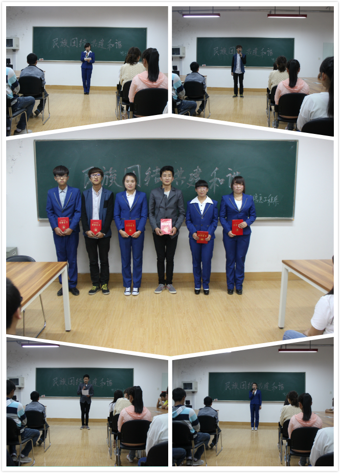 5月20日晚,由電子信息工程系舉辦的“謳歌民族團(tuán)結(jié)、建設(shè)和諧校園”主題演講比賽在尚德樓5樓順利舉行。系輔導(dǎo)員鄧偉華、團(tuán)總支書記唐宗舜及其他三位班主任老師擔(dān)任評(píng)委。