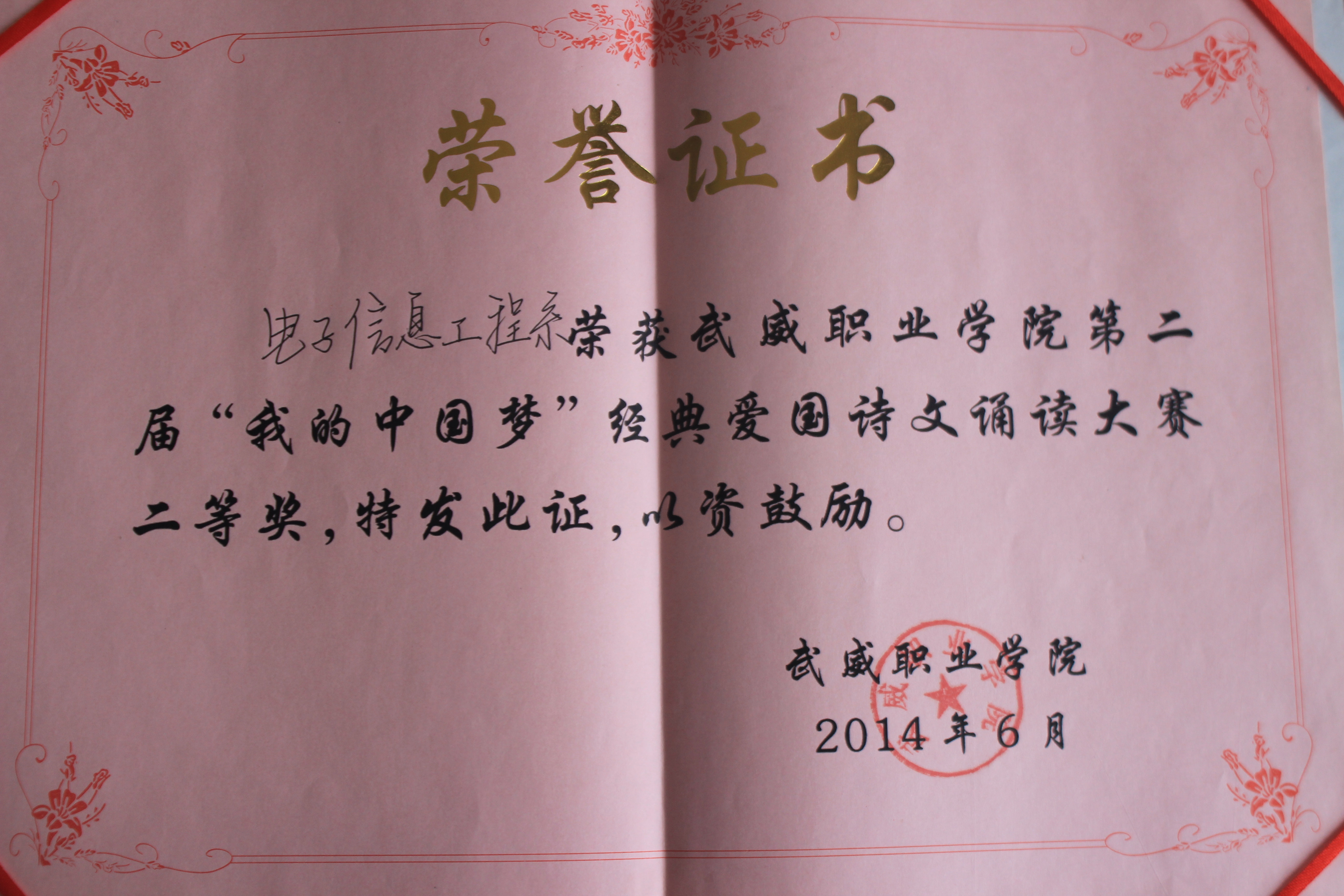 第二屆“我的中國(guó)夢(mèng)”經(jīng)典愛國(guó)詩文誦讀大賽-二等獎(jiǎng)