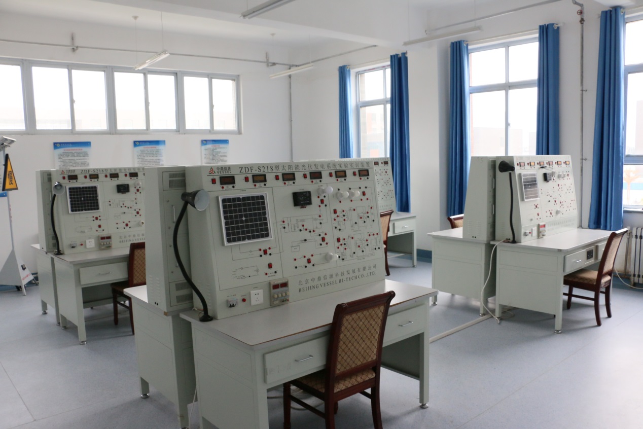 實訓功能:本實訓室擁有太陽能光伏發(fā)電系統(tǒng)實驗裝置8套。主要服務課程為光伏發(fā)電技術分析與應用、光伏材料的加工與檢測等。