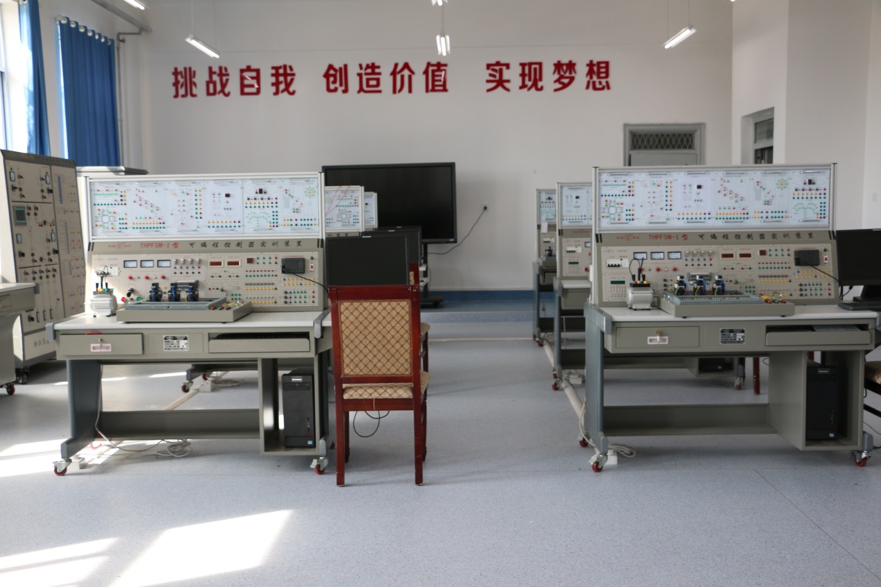 實(shí)訓(xùn)功能:本實(shí)訓(xùn)室擁有供配電技術(shù)實(shí)訓(xùn)裝置、電力系統(tǒng)繼電保護(hù)實(shí)訓(xùn)裝置??删幊炭刂破鲗?shí)訓(xùn)裝置共8套。主要服務(wù)課程為《電子電路分析與應(yīng)用》、《PLC》、《電氣安裝規(guī)劃與實(shí)施(電工)》、《供配電技術(shù)》等。