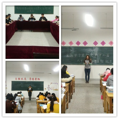 為深入學習宣傳十八屆六中全會精神,引導廣大團員青年準確把握全會的精神實質(zhì)和深刻內(nèi)涵,藥學系團總支結(jié)合“兩學一做”學習教育和貫徹落實武威市第四次黨代會精神,于12月7日晚,在明遠樓組織各班團支部開展了學習黨的十八屆六中全會精神主題團會。團會由各班團支部書記主持,會議傳達了十八屆六中全會精神和武威市第四次黨代會精神,領學了《中國共產(chǎn)黨第十八屆中央委員會第六次全體會議公報》內(nèi)容。