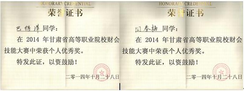 經(jīng)濟管理系12級會計電算化大專班四名學生在李惠蘭老師和賀德赟老師帶領(lǐng)下于2014年10月28日赴蘭州參加了2014年甘肅省高等職業(yè)院校財會技能大賽。