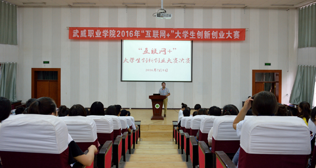 為貫徹落實(shí)《教育部關(guān)于舉辦第二屆“互聯(lián)網(wǎng)+”大學(xué)生創(chuàng)新創(chuàng)業(yè)大賽的通知》(教高函[2016]4號)精神,根據(jù)省教育廳《關(guān)于舉辦第二屆“互聯(lián)網(wǎng)+”大學(xué)生創(chuàng)新創(chuàng)業(yè)大賽甘肅省選拔賽的通知》(甘教高函[2016]22號)要求,進(jìn)一步激發(fā)大學(xué)生創(chuàng)新創(chuàng)業(yè)熱情,提高大學(xué)生創(chuàng)業(yè)能力,以創(chuàng)新引領(lǐng)創(chuàng)業(yè)、創(chuàng)業(yè)帶動就業(yè),推動畢業(yè)生更高質(zhì)量創(chuàng)業(yè)就業(yè),學(xué)院以主題為“互聯(lián)網(wǎng)+”時(shí)代,共筑創(chuàng)新創(chuàng)業(yè)夢想的大學(xué)生創(chuàng)新創(chuàng)業(yè)大賽于7月8日晚在尚德樓正德廳順利舉辦。出席本次大賽的領(lǐng)導(dǎo)有主管招生就業(yè)工作副院長潘玉華、教務(wù)處處長仲生仁、科研處處長張玉琴、招生就業(yè)處處長蔡柱山。