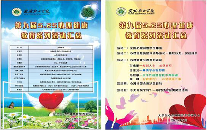 為貫徹落實(shí)習(xí)近平總書記在全國高校思想政治工作會(huì)議上的講話和教育部《關(guān)于加強(qiáng)普通高校大學(xué)生心理健康教育工作的意見》等文件精神,迎接“5·25”全國大學(xué)生心理健康日,提高我院學(xué)生心理健康水平,展現(xiàn)我院學(xué)生積極向上的精神風(fēng)貌。學(xué)生工作處于5月20日至6月20日開展了第九屆“5·25”心理健康宣傳月系列活動(dòng)。