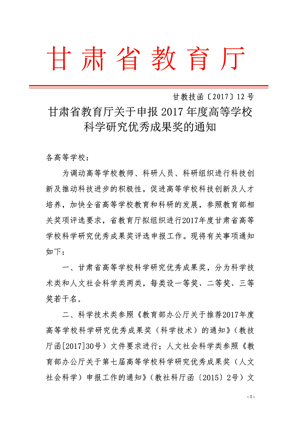 甘肅省教育廳關(guān)于申報2017年度甘肅省高等學(xué)校科…