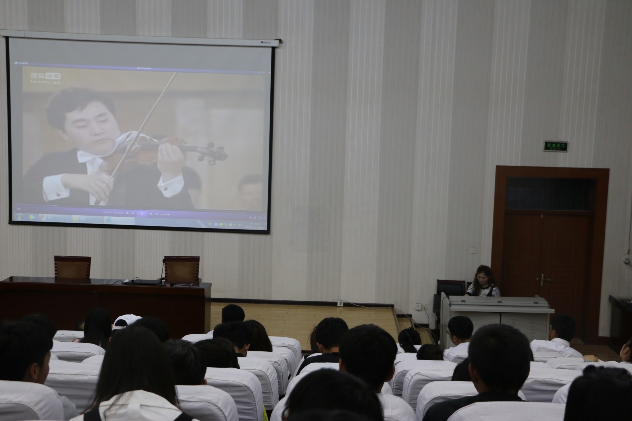 伴著優(yōu)美的音樂旋律王敏副教授開始了講座,王老師首先介紹了音樂發(fā)展歷史和音樂鑒賞的基礎知識,然后以我國著名作曲家陳鋼、何占豪先生創(chuàng)作的小提琴協(xié)奏曲《梁山伯與祝英臺》為題材,分階段講述了“鳥語花香”、“草橋結拜”、“英臺抗婚”、“投墳化蝶”等內容和藝術場景。剖析了作品在管樂、和以小提琴、大提琴為主的弦樂及民樂有機結合的高超藝術境界,講座過程中王老師結合《梁?!穮f(xié)奏曲音視頻資料,演繹了梁山伯與祝英臺凄美的愛情故事。