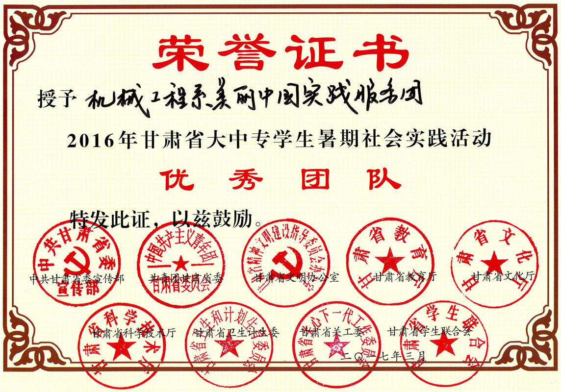 甘肅省大中專學生暑期社會實踐活動優(yōu)秀團隊---機械制造系美麗中國實踐服務團