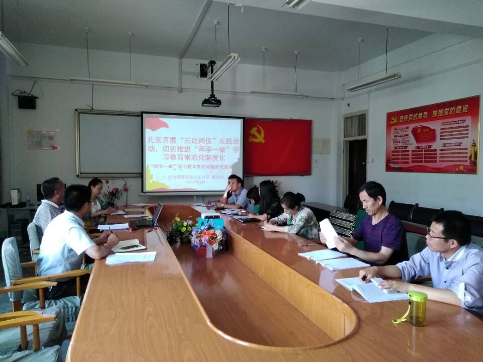 為了扎實開展“三比兩促”實踐活動,切實推進“兩學一做”學習教育常態(tài)化制度化,經(jīng)濟管理系于6月29日開展了黨總支書記講黨課活動。黨課由經(jīng)濟管理系黨總支書記潘從民主講,全體黨員參加了本次活動。