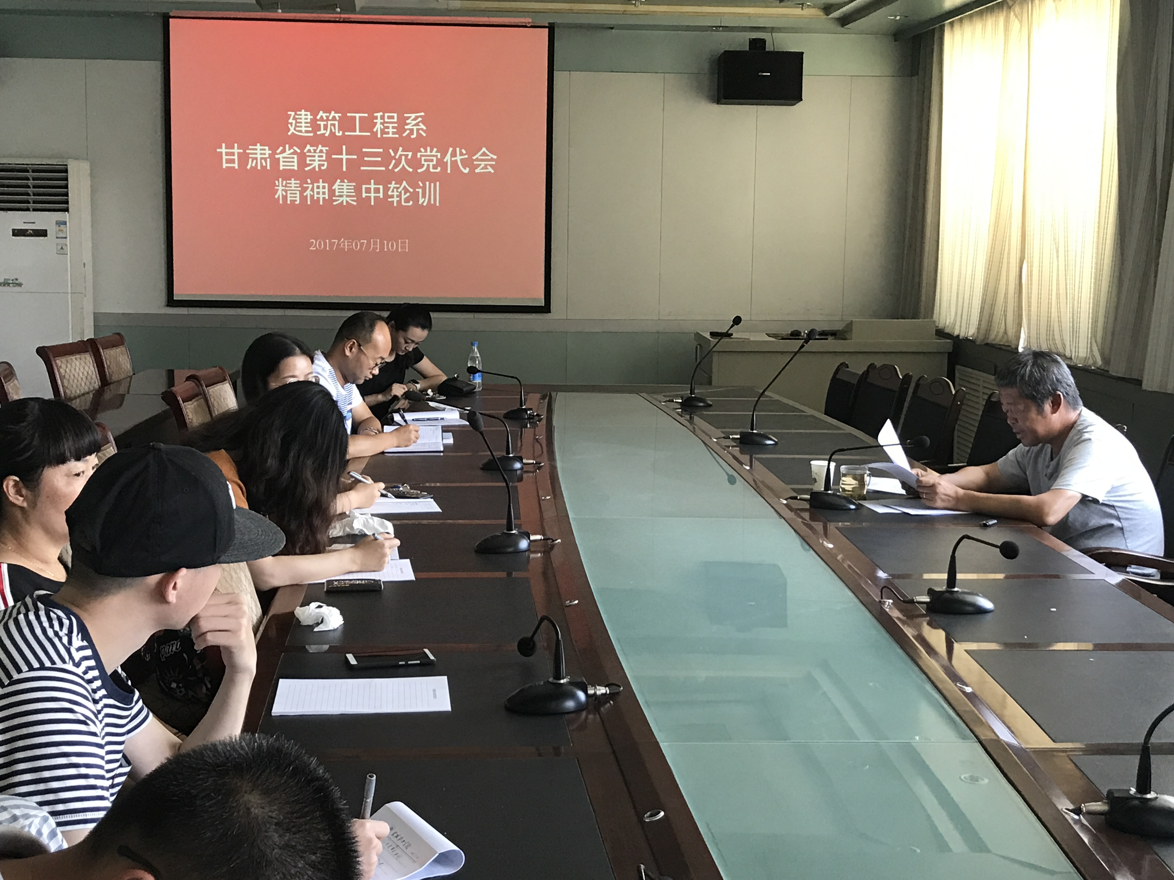為學(xué)習(xí)貫徹落實(shí)好中國共產(chǎn)黨甘肅省第十三次代表大會精神和市委四屆四次全體(擴(kuò)大)會議精神,根據(jù)學(xué)院黨委安排,7月10日—12日,建筑工程系黨總支組織全體黨員、專業(yè)教師17人進(jìn)行了集中輪訓(xùn)。