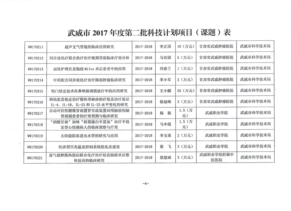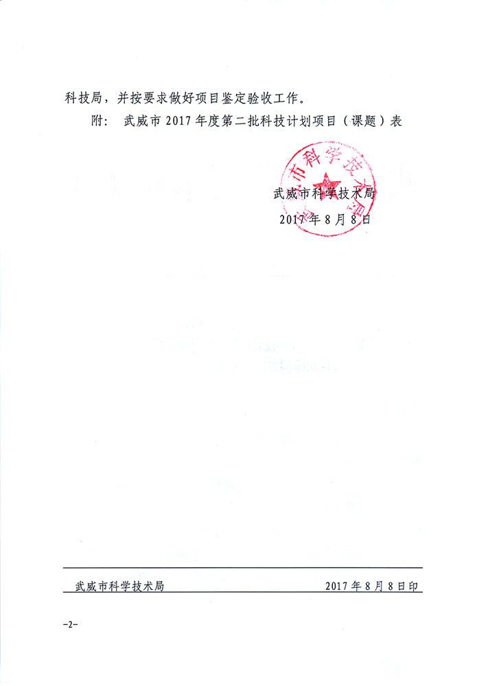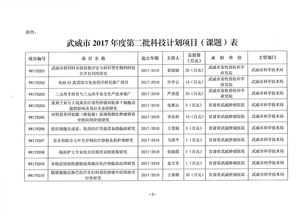 轉(zhuǎn)發(fā)武威市科學(xué)技術(shù)局關(guān)于下達武威市2017年度第二批市列科技計劃項目的通知