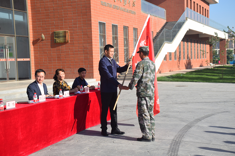 動(dòng)員大會(huì)在莊嚴(yán)的國(guó)歌聲中開始,學(xué)院學(xué)工辦負(fù)責(zé)人劉菊萍就訓(xùn)練時(shí)間、訓(xùn)練紀(jì)律要求等方面做了具體的安排。軍訓(xùn)教官代表王雯和新生代表張林旺分別發(fā)言表態(tài)。湯旻安代表學(xué)院在會(huì)上作了軍訓(xùn)動(dòng)員講話。他強(qiáng)調(diào),同學(xué)們要在軍訓(xùn)過程中要提高認(rèn)識(shí)、端正態(tài)度,真正把軍訓(xùn)作為大學(xué)生的一門必修課;刻苦訓(xùn)練、認(rèn)真學(xué)習(xí),在訓(xùn)練中樹立不怕苦、不怕累的精神,確保訓(xùn)練效果;嚴(yán)格要求、強(qiáng)化管理,確保軍訓(xùn)工作緊張、有序、安全;講文明樹新風(fēng)、除陋習(xí)展形象,樹立良好風(fēng)尚,展示新時(shí)代大學(xué)生的風(fēng)采;以人為本、科學(xué)施訓(xùn),確保軍訓(xùn)工作取得實(shí)效。最后,由湯旻安向軍訓(xùn)教官授旗,標(biāo)志著2017級(jí)新生軍訓(xùn)正式拉開帷幕。