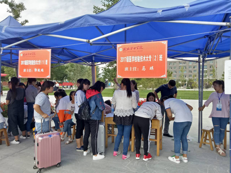 2017年,我系開設(shè)醫(yī)學(xué)檢驗技術(shù)、康復(fù)治療技術(shù)、口腔醫(yī)學(xué)技術(shù)三個專業(yè),計劃招生408人,截止目前,各專業(yè)新生實際報到372人,報到率91%,順利完成了2017級新生報到工作。