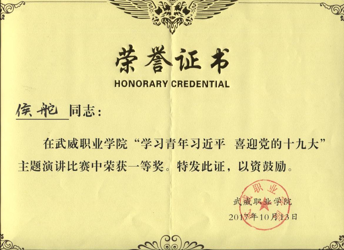 我系教師侯舵榮獲“學(xué)習(xí)青年習(xí)近平,喜迎黨的十九大”主題演講比賽一等獎(jiǎng)