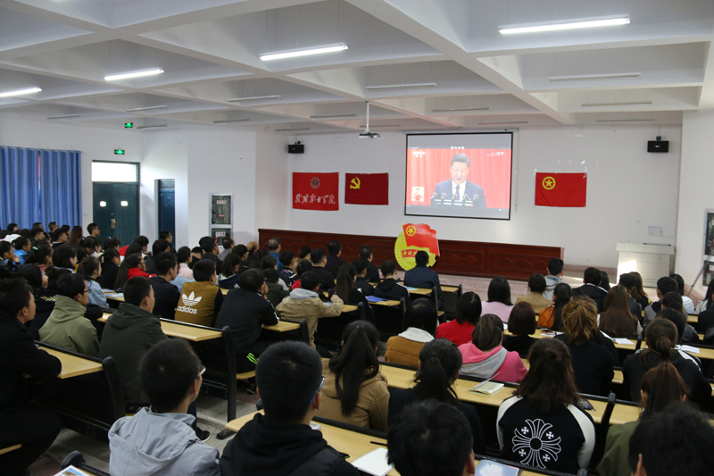 為收看好、學習好黨的十九大開幕會,把黨中央的聲音傳達到廣大師生心中,學院黨委專題安排組織領導班子成員,各部門、單位負責同志、副科級以上干部及全院師生集中觀看黨的十九大開幕會盛況。