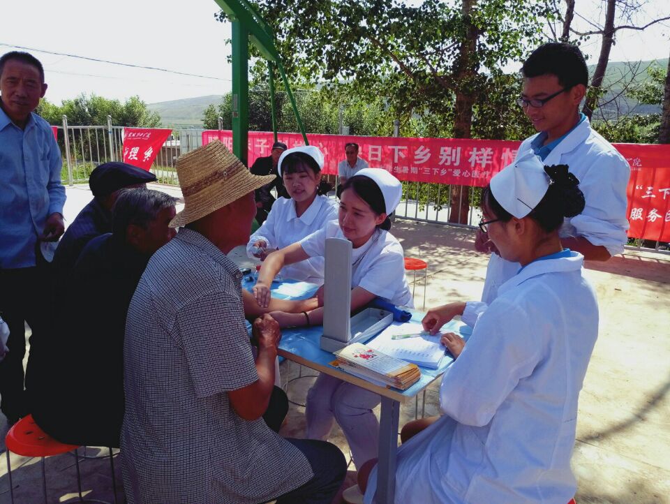 2017年暑假期間,護(hù)理系積極響應(yīng)院團(tuán)委暑期“三下鄉(xiāng)”社會(huì)實(shí)踐活動(dòng)的號(hào)召,組織11名學(xué)生成立了“愛(ài)心醫(yī)療服務(wù)團(tuán)”,赴武威市新井村、張義鎮(zhèn)、武威第十一中學(xué)、小洪溝河灣村、沙金臺(tái)村等多地開展了為期6天的社會(huì)實(shí)踐活動(dòng)。