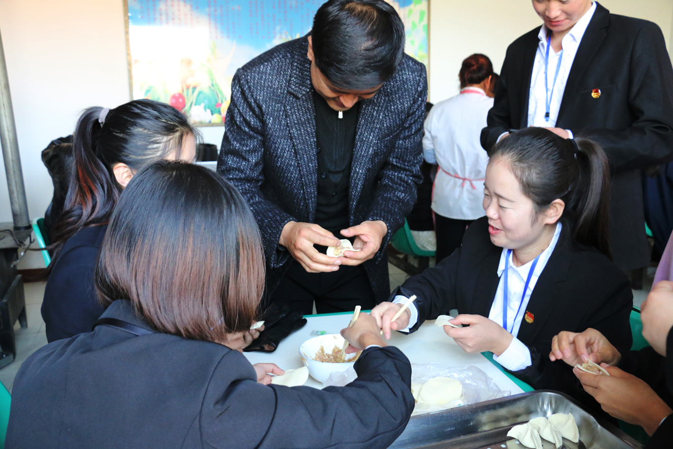 上午八點(diǎn)半,醫(yī)學(xué)技術(shù)學(xué)院各位黨員、入黨積極分子、團(tuán)學(xué)干部、師生代表在廚房為老人包餃子,并整理被褥;康復(fù)治療專業(yè)教師黨員高萬飛為老人講解“如何健康養(yǎng)生”;系團(tuán)總支為老人們送上毛巾、牙膏、香皂等日常生活用品;愛牙協(xié)會的志愿者為老人,進(jìn)行牙齒檢查,講解如何愛護(hù)牙齒;中醫(yī)養(yǎng)生協(xié)會的志愿者為老人們測血壓,演示常用的按摩方法。中午時(shí)分,老人們吃著熱氣騰騰的餃子,看著全系師生代表為老人們準(zhǔn)備的精彩節(jié)目,臉上洋溢著幸福的笑容。