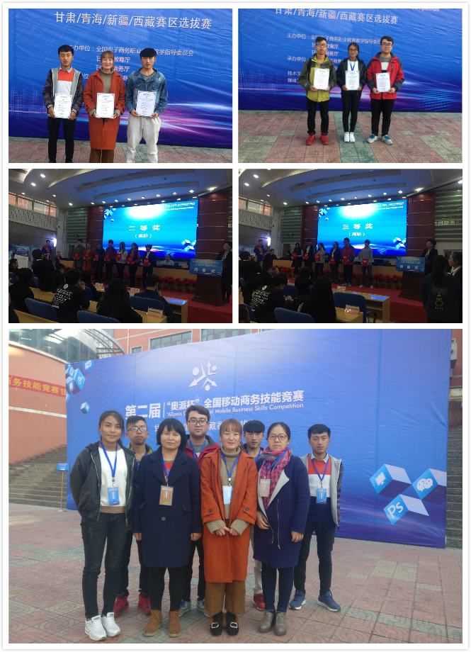 ?? 來自甘、青、新、藏24所院校的54支中、高職隊伍參加比賽。此次大賽旨在檢驗和展示職業(yè)院校移動商務專業(yè)教學成果,以賽促建,以賽促教,推進移動商務專業(yè)在職業(yè)院校中的布點建設,引領高等職業(yè)學校電子商務專業(yè)教學改革及移動商務專業(yè)建設的新趨勢。競賽經(jīng)過激烈的角逐,我院電子信息工程系、經(jīng)濟管理系聯(lián)合由齊紅梅、任向陽、張程鵬組成的“躍動力”隊獲得團體二等獎,由高勇、劉建歡、王婷娟組成的“微江湖”隊獲得省級三等獎,張玉梅和郭秀花老師分別獲得優(yōu)秀指導教師獎。