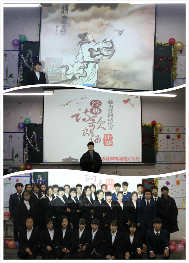 為了弘揚(yáng)中華民族傳統(tǒng)文化,倡導(dǎo)學(xué)生立德修身,培育愛國情操,2017年11月20日,17級計算機(jī)網(wǎng)絡(luò)大專班舉辦了主題為“傳承中華文化,共筑青春夢想”經(jīng)典詩歌誦讀比賽。