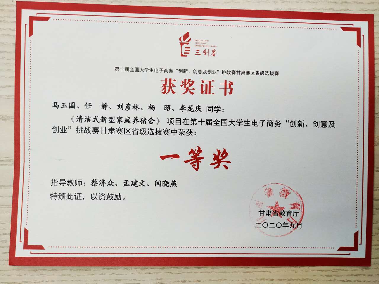 第十屆全國大學生電子商務“創(chuàng)新、創(chuàng)意及創(chuàng)業(yè)挑戰(zhàn)賽甘肅省賽區(qū)省級選拔賽《清潔式新型家庭養(yǎng)豬舍》
