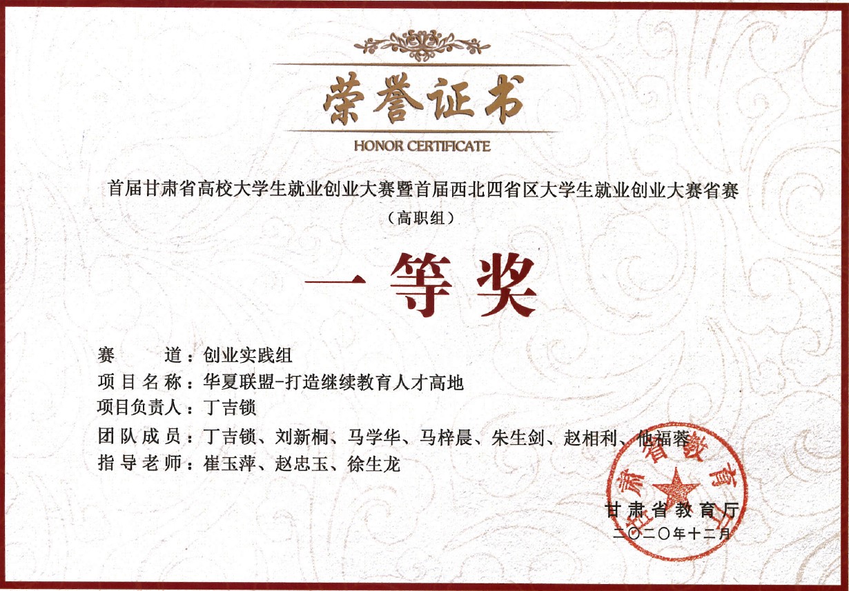 首屆甘肅省高校大學生就業(yè)創(chuàng)業(yè)大賽暨首屆西北四省區(qū)大學生就業(yè)創(chuàng)業(yè)大賽省賽(高職組)《華夏聯(lián)盟-打造繼續(xù)教育人才高低地》