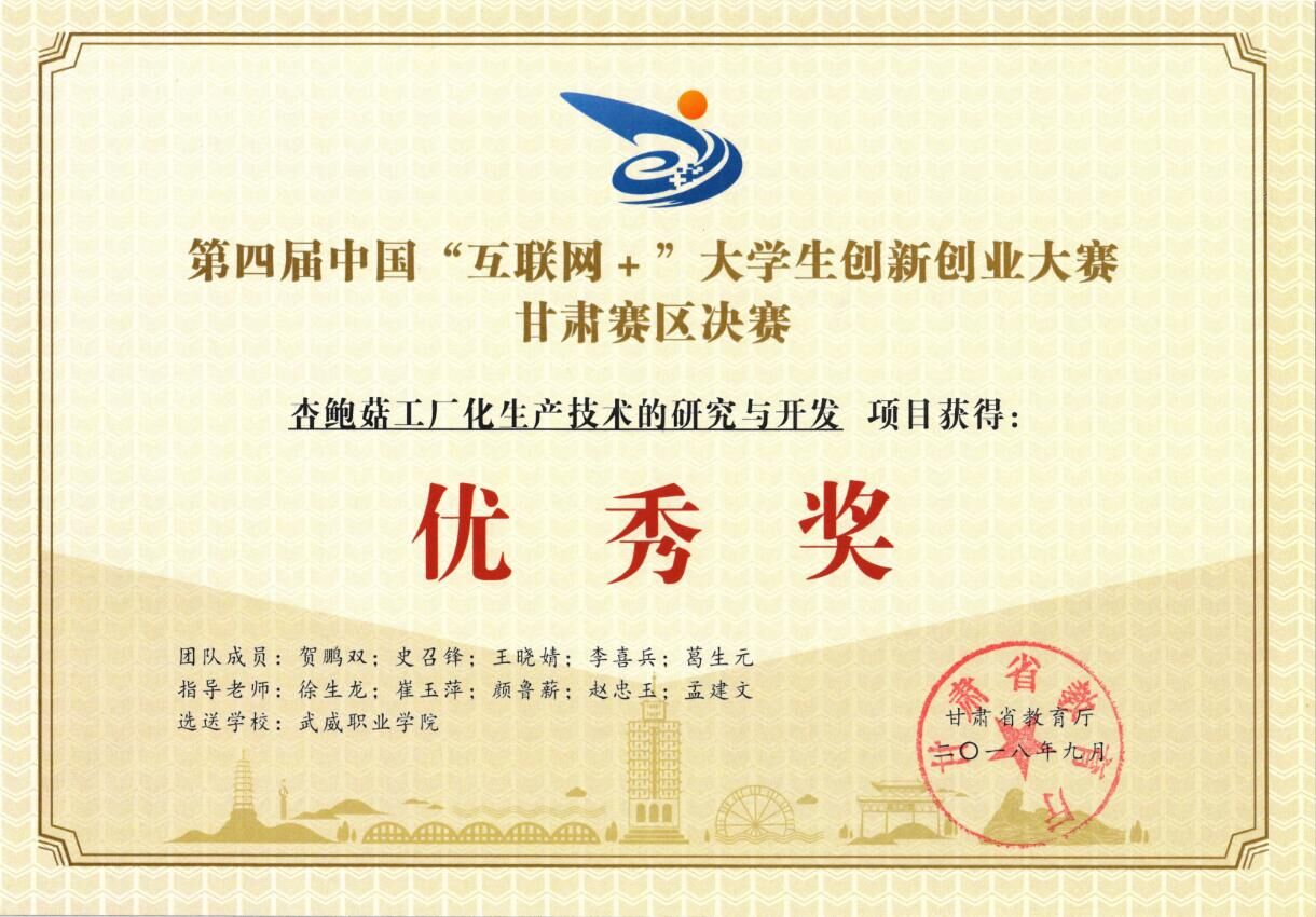 第四屆中國“互聯(lián)網(wǎng)+”大學生創(chuàng)新創(chuàng)業(yè)大賽甘肅賽區(qū)決賽《杏鮑菇工廠化生產(chǎn)技術(shù)的研究與開發(fā)》