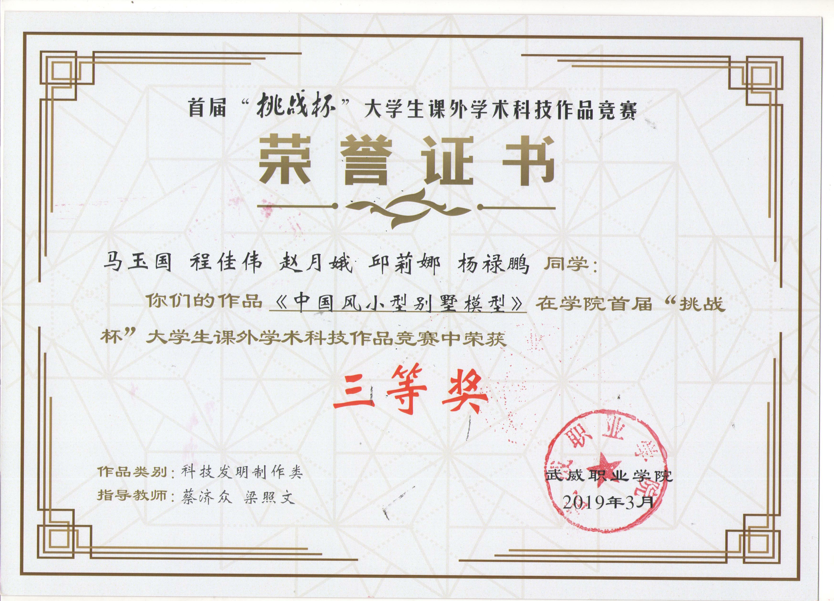 武威職業(yè)學院首屆“挑戰(zhàn)杯”大學生課外學術(shù)科技作品《中國風小型別墅模型》