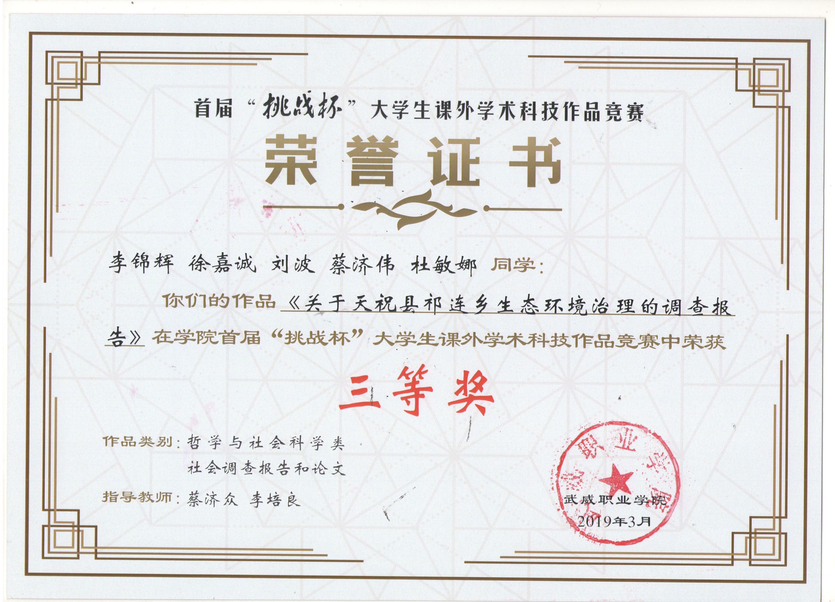 武威職業(yè)學院首屆“挑戰(zhàn)杯”大學生課外學術(shù)科技作品《關(guān)于天??h祁連山生態(tài)環(huán)境治理的調(diào)查報告》