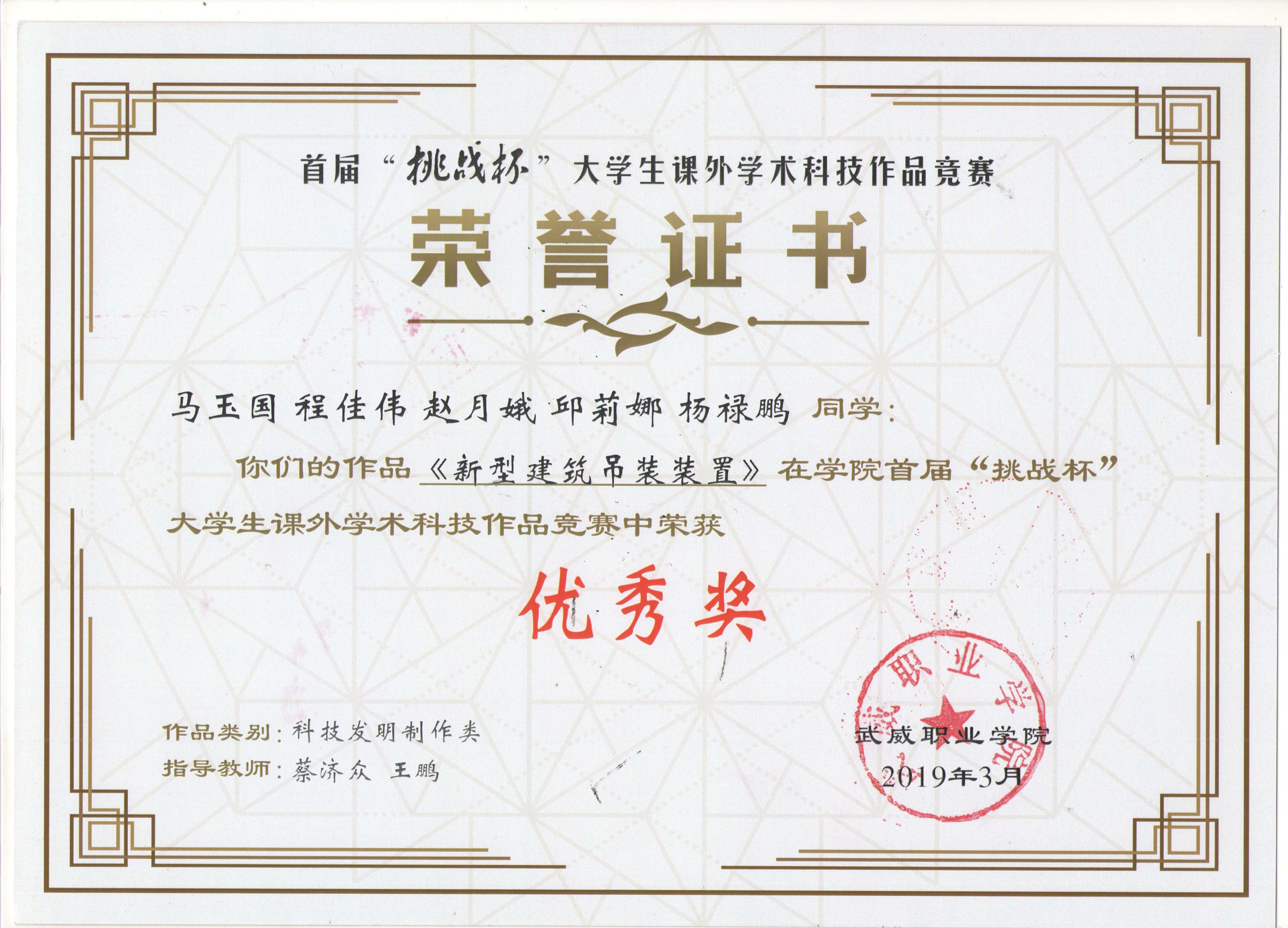 武威職業(yè)學院首屆“挑戰(zhàn)杯”大學生課外學術(shù)科技作品《新型建筑吊裝裝置》