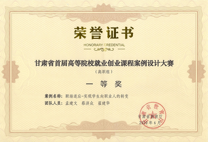 榮獲甘肅省首屆高等院校就業(yè)創(chuàng)業(yè)課程案例設計大賽(高職組)一等獎