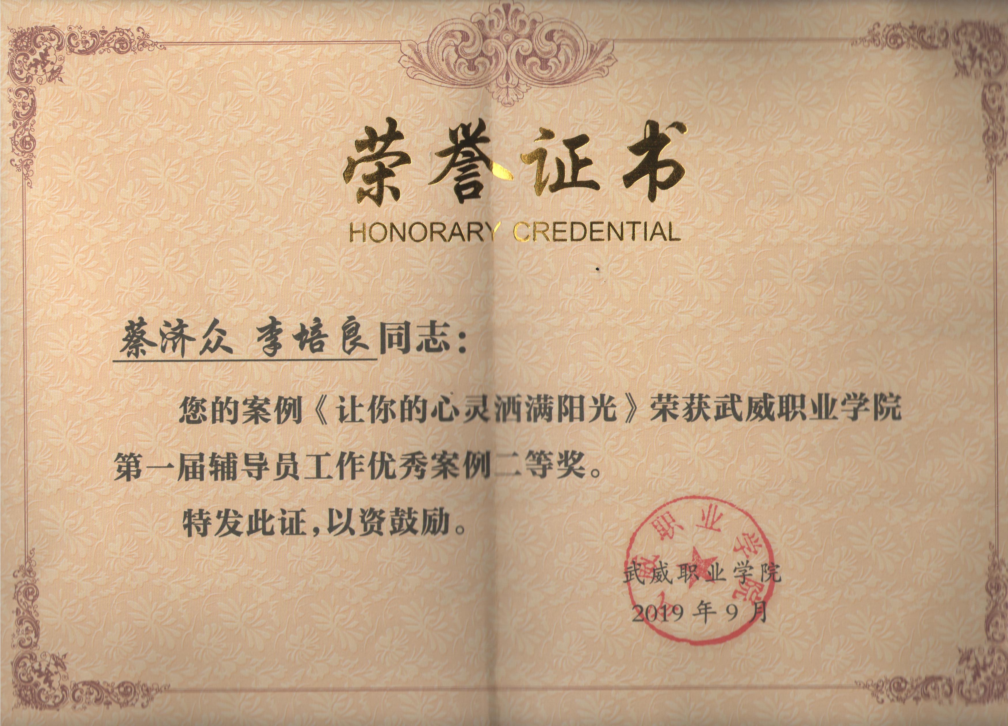 武威職業(yè)學(xué)院第一屆輔導(dǎo)員工作優(yōu)秀案例《讓你的心靈灑滿陽(yáng)光》